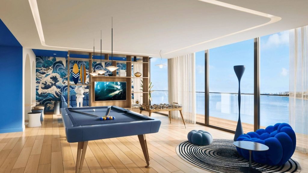 Expansive podium-level “vertical resort” with infinity pool, spa, yoga, gym, cinema, games room, kids’ club and outdoor social decks